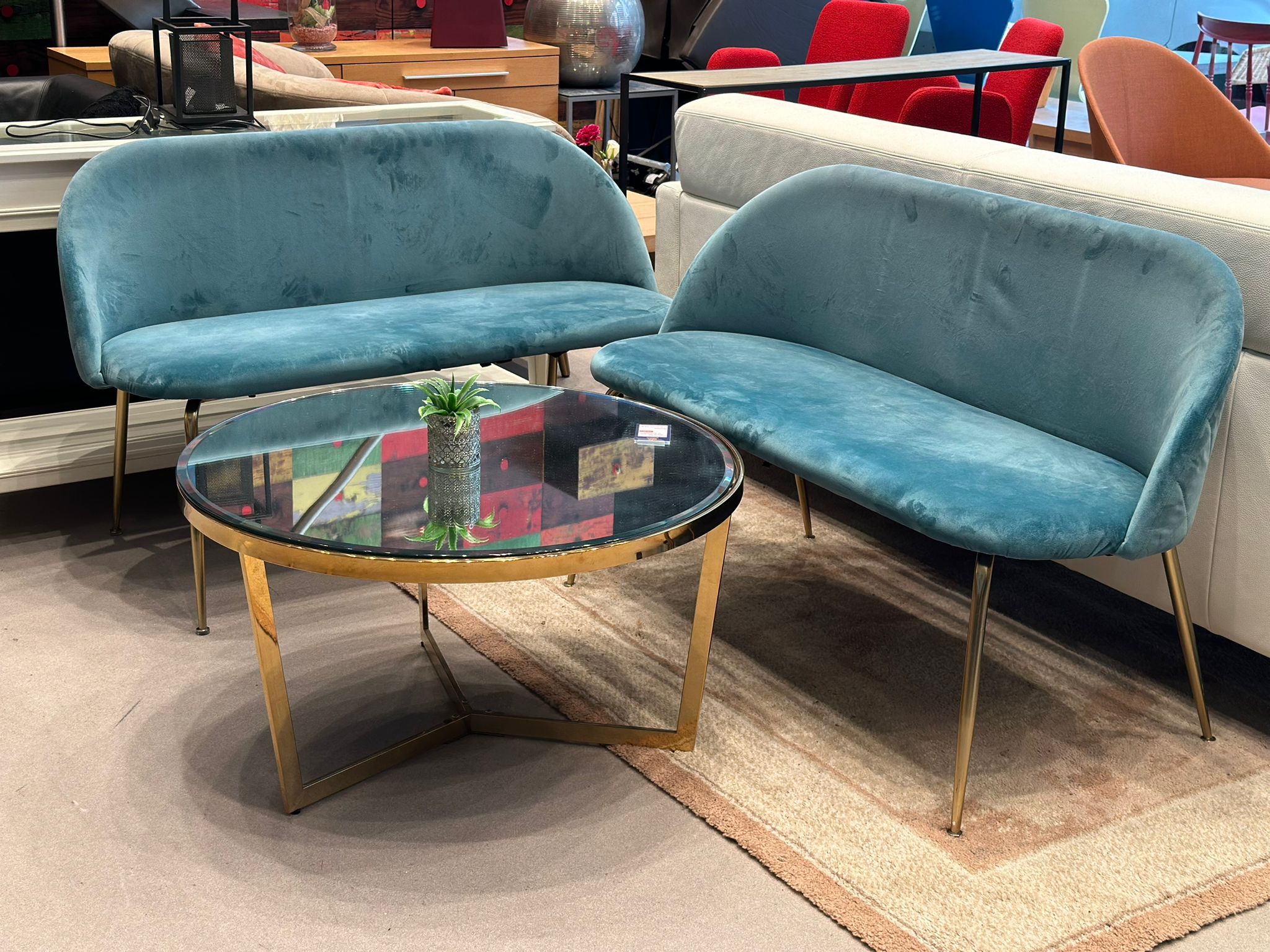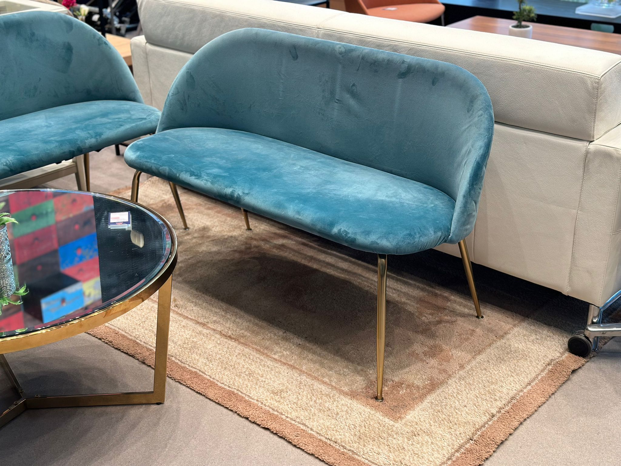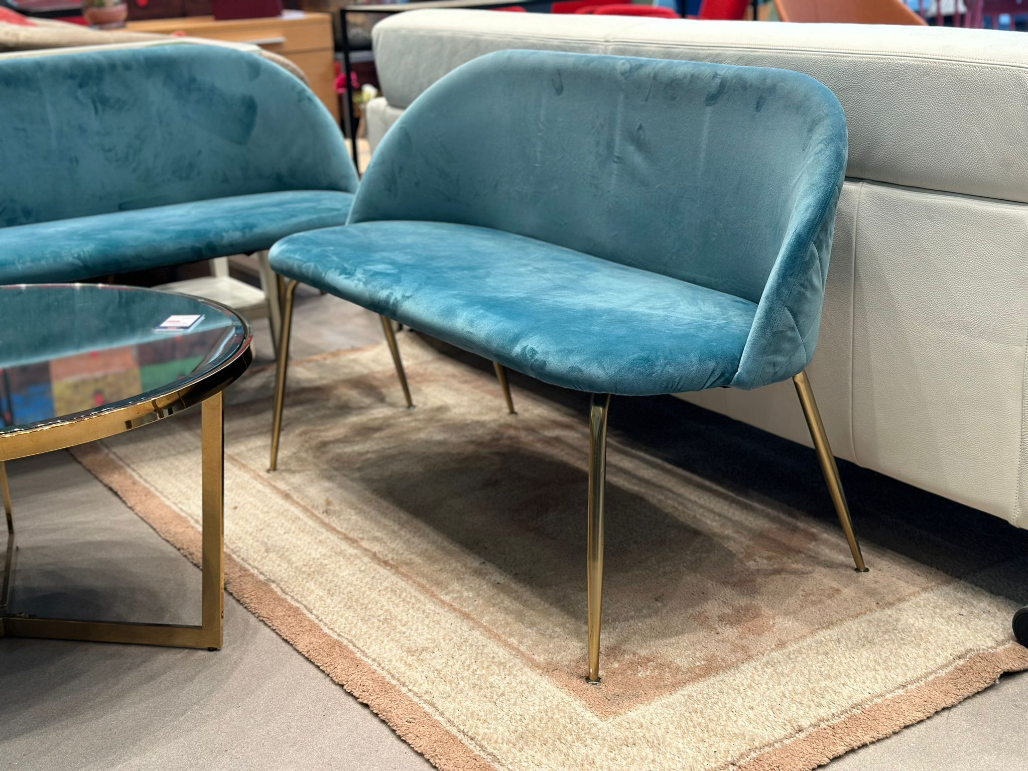 Banquette 2pl en velours turquois (2 pièces disponibles)