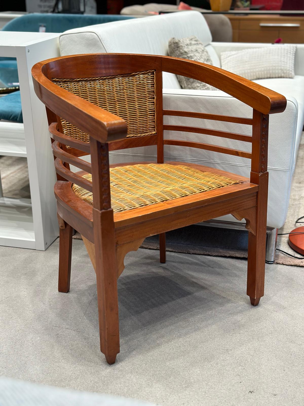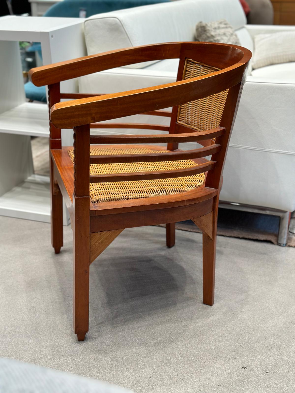 Chaise d’appoint vintage en bois massif et osier Art Déco Ca 1930