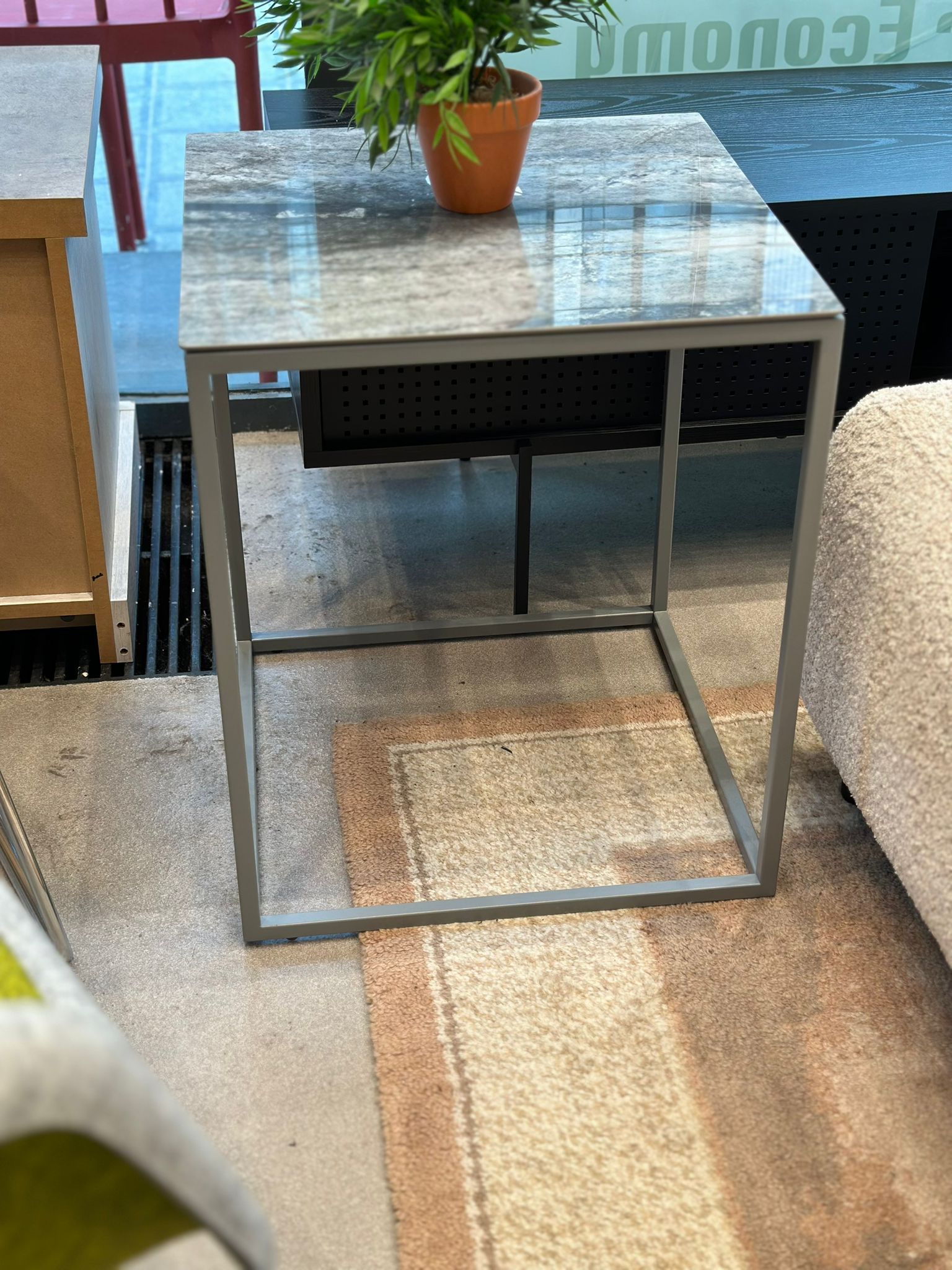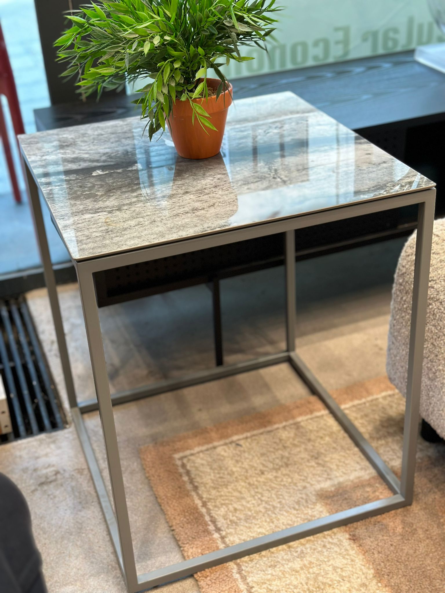 Table d’appoint effet marbre dessus en verre